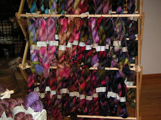 Here is my rack of handpainted Blueface Leicester rovings which was very bare at the end of the day.